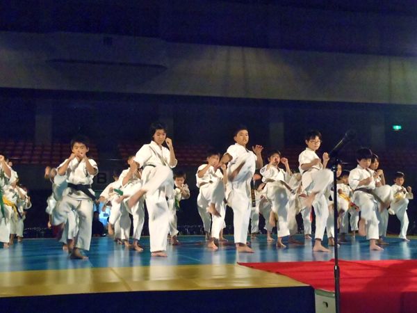 ↓長い年月をかけて先人が遺した空手の「型」の演舞 ↓記念写真を一枚。
