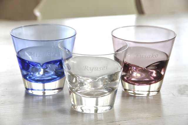 ガラス作家さんによるグラスに私たちの名前が入っています。