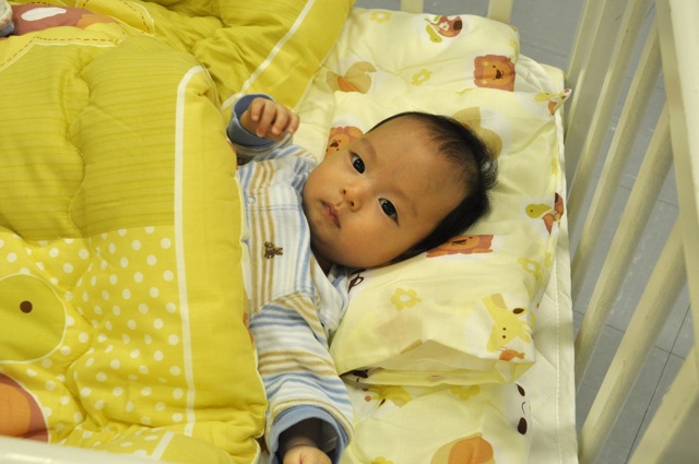 スタジオのベビーベットでシッターさんといい子で待っていてくれました。