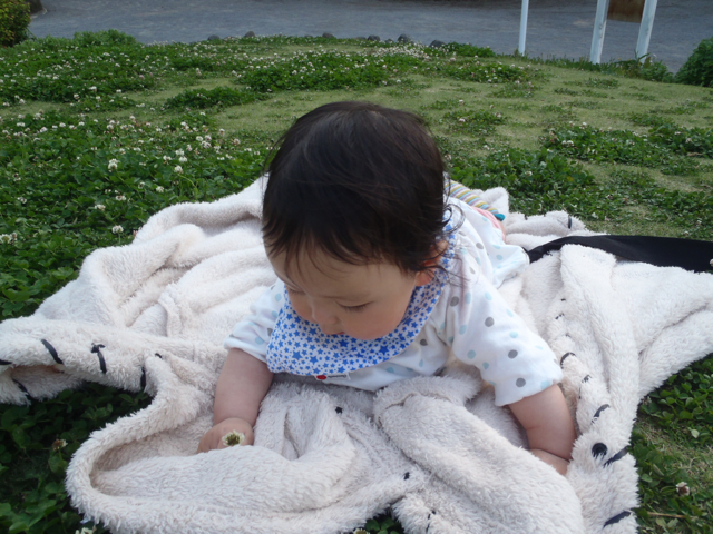 龍聖くんは八ヶ月になり、おすわり出来るようになりました。